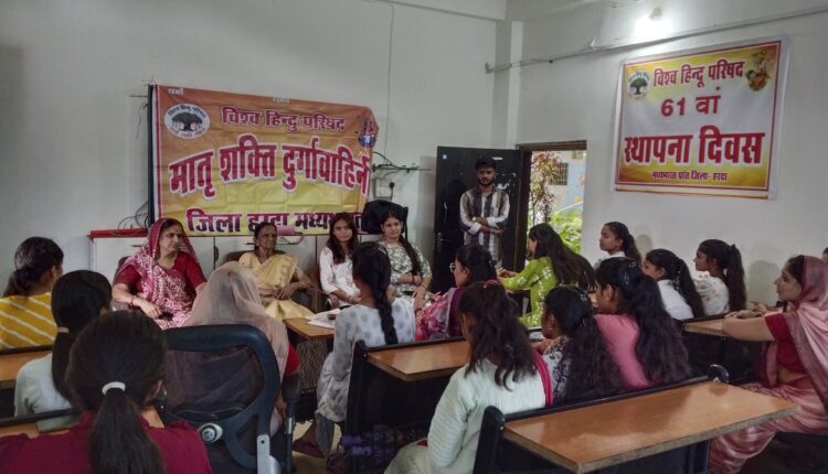 रहटगांव: प्रखंड रहटगांव में विश्व हिंदू परिषद का 61वां स्थापना दिवस बड़े उत्साह और गरिमा के साथ मनाया गया। इस अवसर पर मातृशक्ति एवं दुर्गा वाहिनी की बहनों की एक विशेष बैठक आयोजित की गई।
