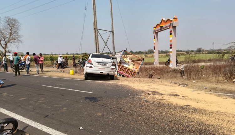 मकड़ाई समाचार हरदा : शनिवार दोपहर को छीपाबड़ थाना क्षेत्र के जटपुरा के पास स्वागत गेट के सामने तीन वाहनों की जोरदार भिड़ंत हुई। वाहनों में दो चार पहिया वाहन सहित एक बाइक है। सूत्रों से मिली जानकारी के अनुसार दुर्घटना में दो लोगों को गंभीर चोट आई है।
