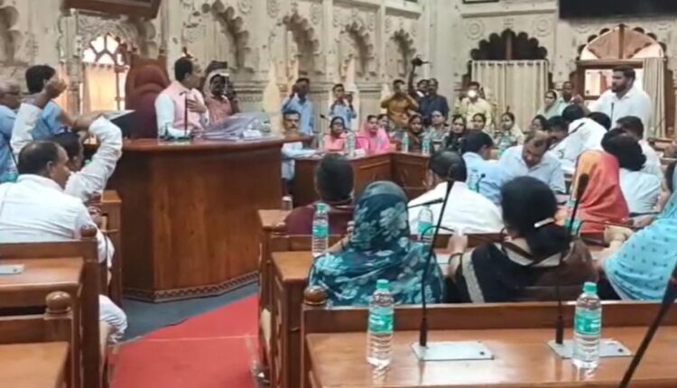ग्वालियर। मध्य प्रदेश के ग्वालियर में नगर निगम की बैठक में जमकर हंगामा देखने को मिला। इस दौरान सभापति मनोज तोमर और भाजपा पार्षद मोहित जाट के बीच तीखी नोकझोंक देखी गई। जब भाजपा पार्षद नहीं माने तो सभापति ने कहा कि अगर अनरगल बहस की तो सदन के बाहर कर दूंगा। इस दौरान अन्य सदस्यों ने भाजपा पार्षद मोहित जाट को समझाने की कोशिश की लेकिन वो नहीं माने और लगातार बहसबाजी होती रही।