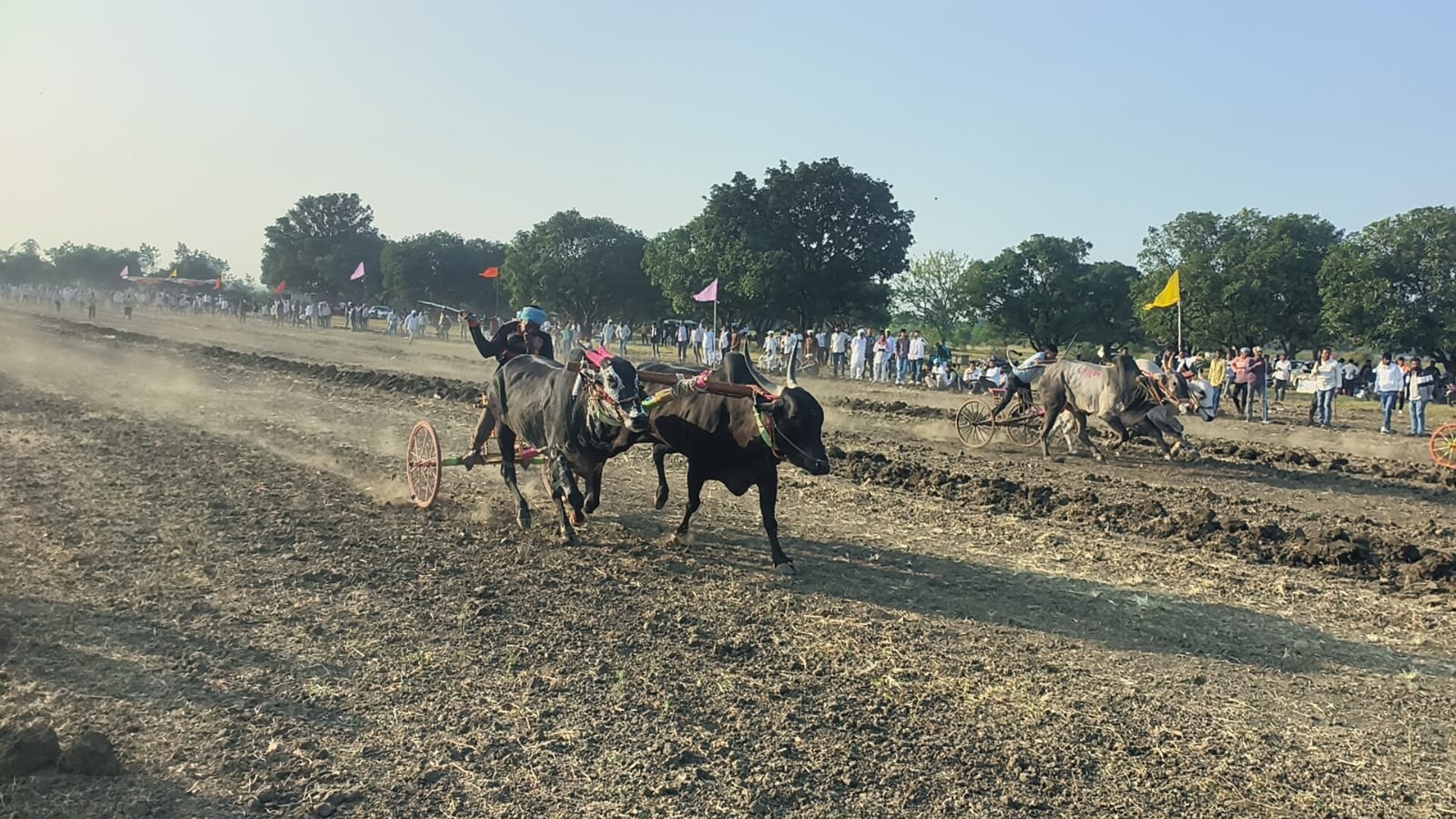 हरदा जिले में पहली बार 3 बैलजोड़ी एक साथ दौड़ी : पहला इनाम देवास जिले के पदम पटेल मगरिया और बद्री सारण कुडगांव की बैलजोड़ी ने जीता