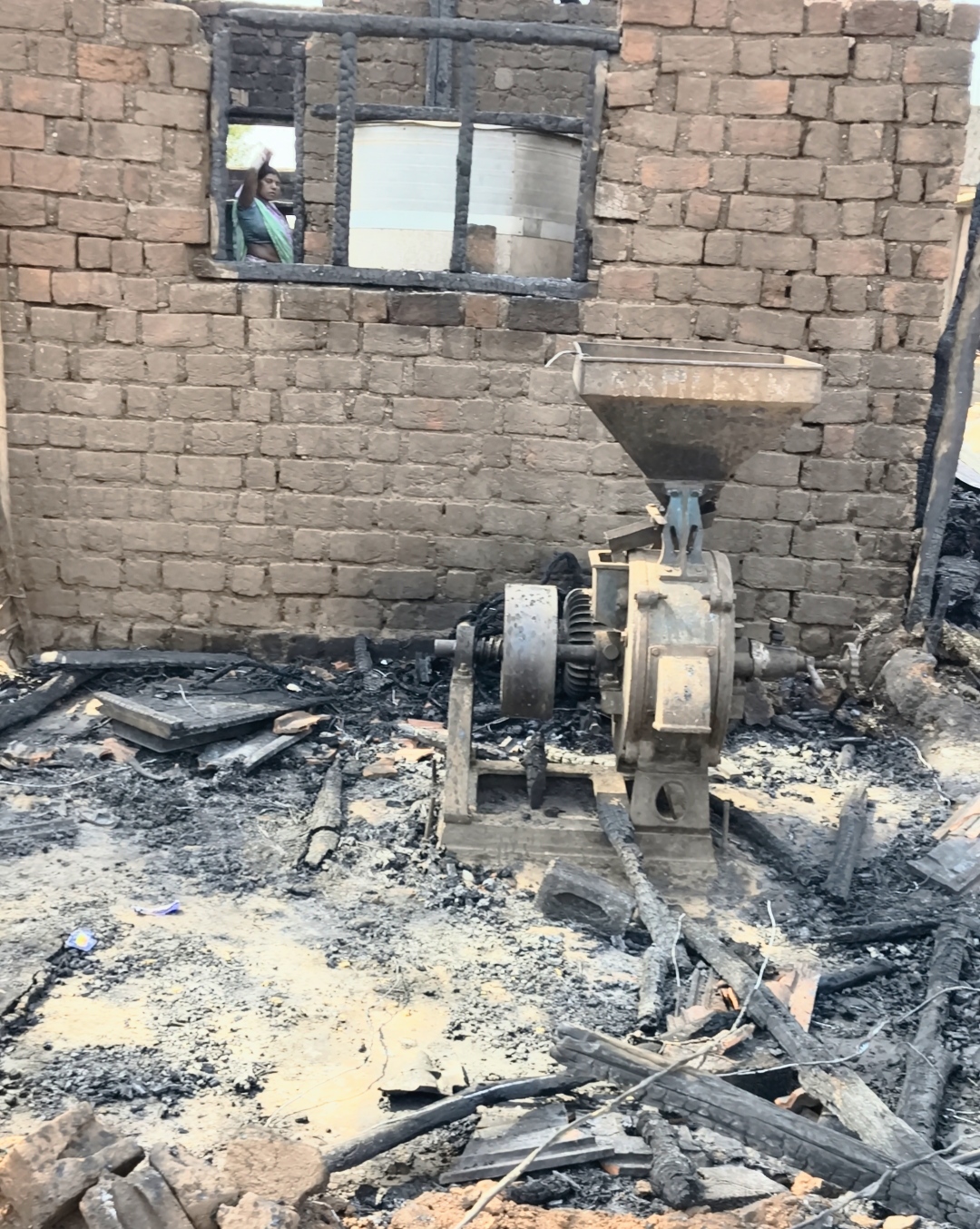 एक बेटा दो बेटियां है।हम मजदूरी करते है। मैं मिर्ची तोड़ने गई थी। बेटा महेंद्र गांव में मूंग में पानी देने के लिए मजदूरी पर गया था। घर पर आकर देखा तो कुछ भी नहीं बचा। आग में मकान और सारा सामान जल कर राख हो गए।