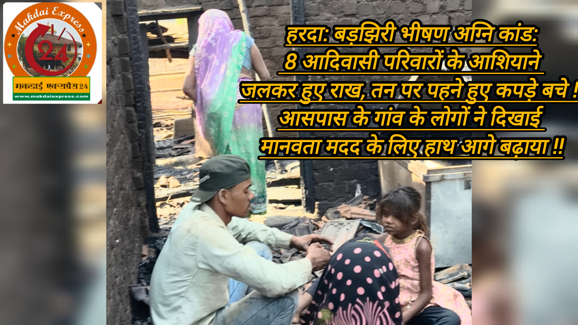 हरदा: बड़झिरी भीषण अग्नि कांड: 8 आदिवासी परिवारों के आशियाने जलकर हुए राख, तन पर पहने हुए कपड़े बचे ! आसपास के गांव के लोगों ने दिखाई मानवता मदद के लिए हाथ आगे बढ़ाया !!