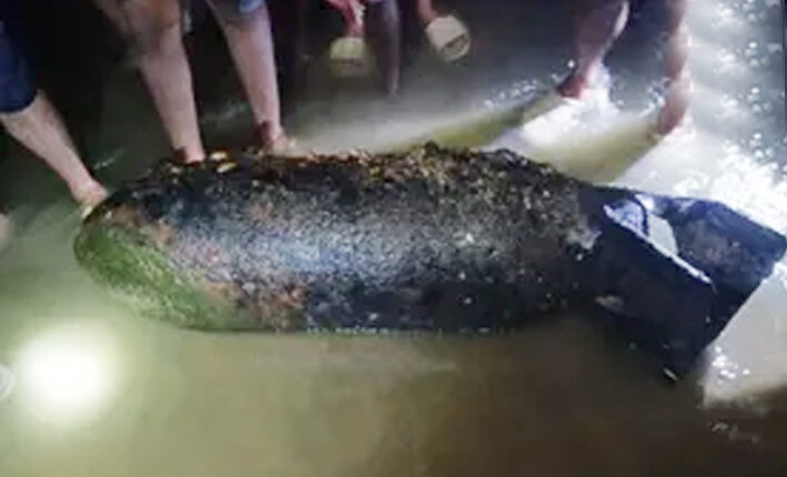 जमशेदपुर। झारखंड के पूर्वी सिंहभूम जिले की स्वर्णरेखा नदी में एक बार फिर भारी भरकम मिसाइल बम मिलने से इलाके में सनसनी फैल गई है। गुरुवार को पानीपोडा क्षेत्र के पानीपोडा में मछली पकड़ने गए ग्रामीणों ने नदी के बीच संदिग्ध धातु की बड़ी वस्तु देखी। जहां पास जाकर जांच करने पर उन्हें आशंका हुई कि यह कोई विस्फोटक सामग्री हो सकती है। ग्रामीणों ने तुरंत बहरागोड़ा थाने को इस मामले की सूचना दी। पुलिस ने तुरंत मौके पर पहुंचकर इलाके के लोगों को सावधान रहने की सलाह दी। इसके साथ ही मामले की जांच शुरु कर दी।