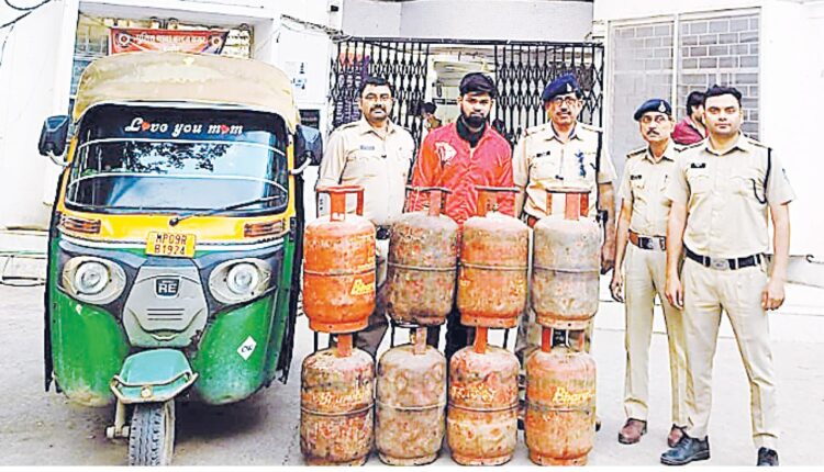 शहर में आवश्यक वस्तुओं की जमाखोरी रोकने के लिए पुलिस विशेष अभियान चला रही है। इसी दौरान थाना प्रभारी तिलक कारोले को सूचना मिली कि एक व्यक्ति ऑटो रिक्शा के जरिए अवैध रूप से सिलेंडरों की सप्लाई कर रहा है। पुलिस ने तत्काल टीम गठित कर केशव नगर निवासी शाहरुख खान (33) को घेराबंदी कर पकड़ा। तलाशी के दौरान उसके ऑटो रिक्शा (क्रमांक एमपी 09 आरबी 1924) से 8 भारत गैस सिलेंडर बरामद किए गए।