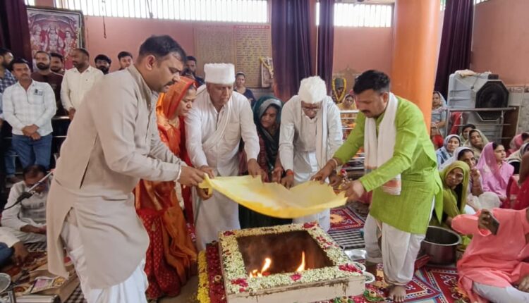 हरदा – गुर्जर मंगल भवन के पास स्थित करूणानिधान नवदुर्गा बजरंग मंदिर में शुक्रवार को राधा कृष्ण भगवान की प्राण प्रतिष्ठा हुई।तीन दिवसीय प्राण प्रतिष्ठा समारोह के समापन दिवस पर पंडित हरिओम जोशी के मार्गदर्शन में महान्यास, देव प्रतिष्ठा एवं पूर्णाहुति हुई।इसके बाद राधाकृष्ण भगवान का मनमोहक श्रृंगार हुआ,वहीं विधि विधान से यजमानों द्वारा भगवान का पूजन हुआ।