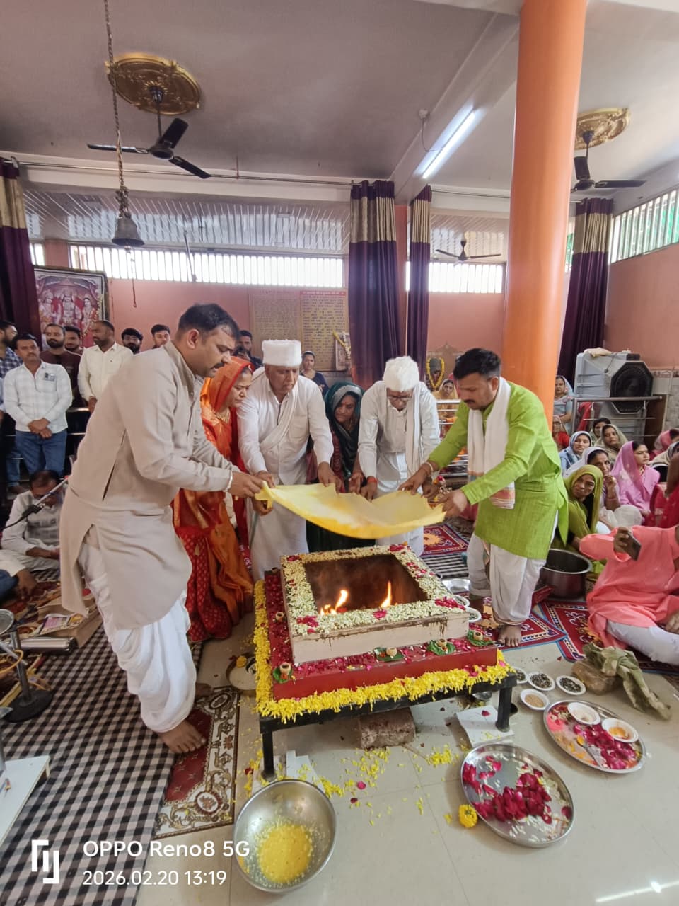 पंडितों ने एक स्वर में मंत्रोच्चार कर परदा हटाया।परदा हटने पर राधेकृष्ण के नारों से भगवान के श्री चरणों में शीश नवाया।पंडित अभिषेक पंडा द्वारा भए प्रकट कृपाला की सुंदर प्रस्तुति हुई।इसके बाद महाआरती हुई।यजमान किशोरीलाल करोड़े, हरिओम करोड़े को पंडित हरिओम जोशी,पंडित सुशील जोशी,पंडित विमल तिवारी,पंडित अभिषेक पंडा,पंडित मुकेश पुरोहित,पंडित सचिन मिश्रा,पंडित आदित्य जोशी,पंडित विष्णु शर्मा सहित पंडितों के निर्देशन में पूजन कराया गया।
