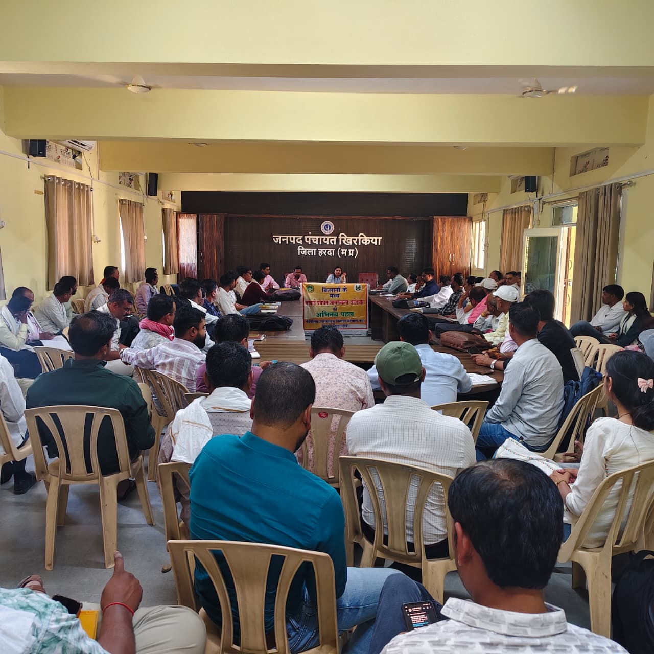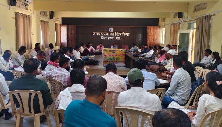 हरदा : एसडीएम खिरकिया सुश्री शिवांगी बघेल की अध्यक्षता में मंगलवार को जनपद पंचायत के सभागार में विकासखण्ड खिरकिया के सभी पटवारी, सचिव एवं कृषि विभाग के कर्मचारियों की नरवाई न जलाने के संबंध में महत्वपूर्ण बैठक आयोजित की गई।