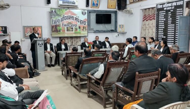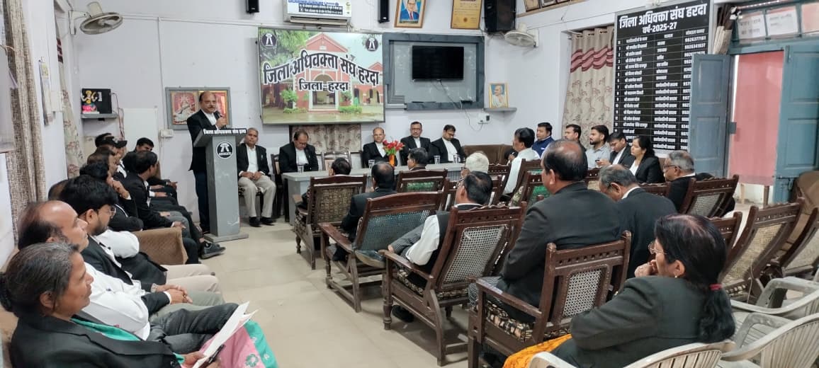हरदा : राष्ट्रीय विधिक सेवा प्राधिकरण, नई दिल्ली और मध्यप्रदेश राज्य विधिक सेवा प्राधिकरण, जबलपुर के आदेशानुसार 14 मार्च 2026 को वर्ष की प्रथम नेशनल लोक अदालत का आयोजन किया जा रहा है। इसी क्रम में प्रधान जिला न्यायाधीश व अध्यक्ष श्री अरविन्द रघुवंशी की अध्यक्षता में बुधवार को जिला अधिवक्ता संघ, हरदा के सभागार में अधिवक्तागण के साथ बैठक का आयोजन किया गया।