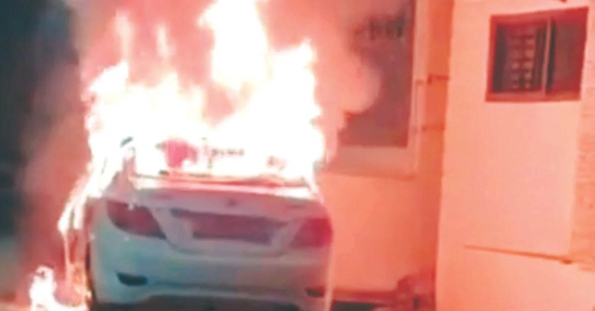 सतीगेट पर शहनाई साड़ी के नाम से कारोबार करने वाले व्यवसायी नरेश धनवानी के साथ यह घटना हुई है। धनवानी का निवास एलपी भार्गव नगर में है। रात में उन्होंने अपनी कार घर के सामने पार्क की थी। करीब 3 बजे मोटरसाइकिल पर सवार दो अज्ञात बदमाश यहां पहुंचे, दोनों ने सफेद कपड़ा सिर और चेहरे पर डाल रखा था। बमुश्किल एक से डेढ़ मिनट में कार में आग लगाकर दोनों फरार हो गए। दमकल यहां पहुंचती तब तक पूरी कार जल चुकी थी।