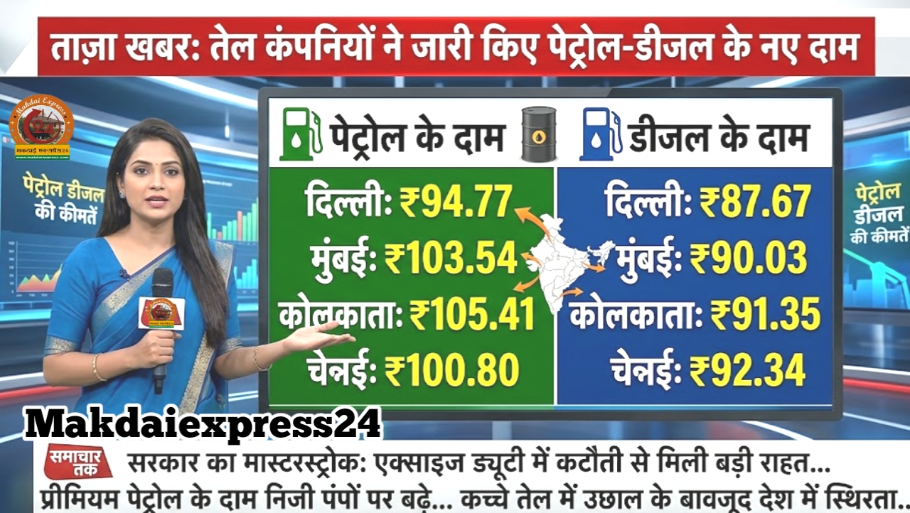 मकड़ाई एक्सप्रेस 24 नई दिल्ली | पश्चिम एशिया में जारी भू-राजनीतिक अस्थिरता और ईरान-इजराइल के बीच बढ़ते तनाव के कारण अंतरराष्ट्रीय बाजार में कच्चे तेल (Crude Oil) की कीमतें 100 डॉलर प्रति बैरल के पार पहुंच गई हैं। इसके बावजूद, भारतीय तेल विपणन कंपनियों (HPCL, BPCL, IOCL) ने आज आम आदमी को राहत देते हुए पेट्रोल और डीजल की खुदरा कीमतों में कोई बड़ा बदलाव नहीं किया है।