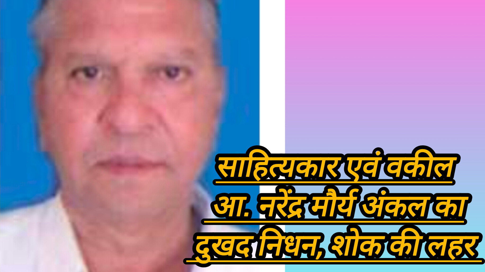 हरदा। शहर के साहित्यकार एवं वकील आ. नरेंद्र मौर्य का दुखद निधन हो गया। 80 वर्ष की उम्र में उन्होंने अंतिम सांस ली।