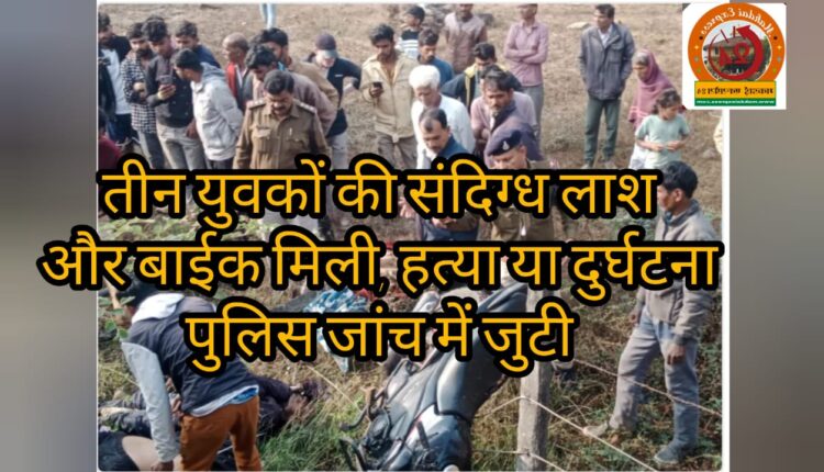 सिवनी मालवा। ग्राम हथनापुर मे कीर ढाबे के पास स्थित पुलिया के नीचे ग्रामीणों ने गुरुवार को सुबह तीन युवकों के शवो को गिरे हुए देखा और वही एक बाईक भी गिरी हुई देखी। ग्रामीणों ने इसकी सूचना डायल 112 को दी। मौके पर पहुंची पुलिस ने तीनो युवकों का पंचनामा बनाकर कब्जे मे लिया और सामूदायिक स्वास्थ्य केंद्र में पोस्टमार्टम के लिए भेजा।