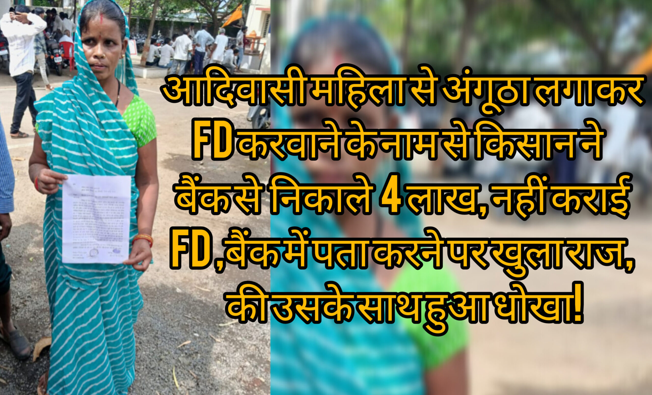 बेटी की मृत्यु पर मिली थी मजदूर महिला को आर्थिक राशि, खेत मालिक ने डकारी: आदिवासी महिला से अंगूठा लगाकर FD करवाने के नाम से किसान ने बैंक से निकाले 4 लाख, नहीं कराई FD ,बैंक में पता करने पर खुला राज, की उसके साथ हुआ धोखा! एसपी को 7 दिन पहले की थी शिकायत सिराली थाने में नहीं हुई FIR दर्ज