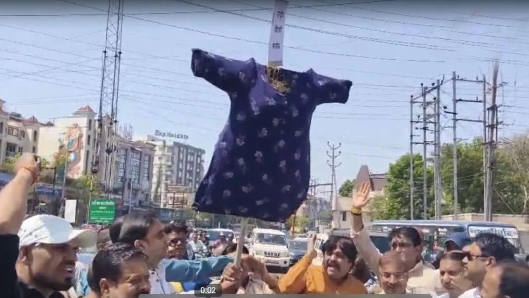 बीजेपी ने इंदौर के 85 वार्डों में विरोध प्रदर्शन का ऐलान किया है। इसी क्रम में नवलखा चौराहे पर एमआईसी मेंबर मनीष शर्मा के नेतृत्व में कांग्रेस पार्षद रुबीना इकबाल खान का पुतला दहन किया गया। प्रदर्शन में सैकड़ों कार्यकर्ता शामिल हुए।