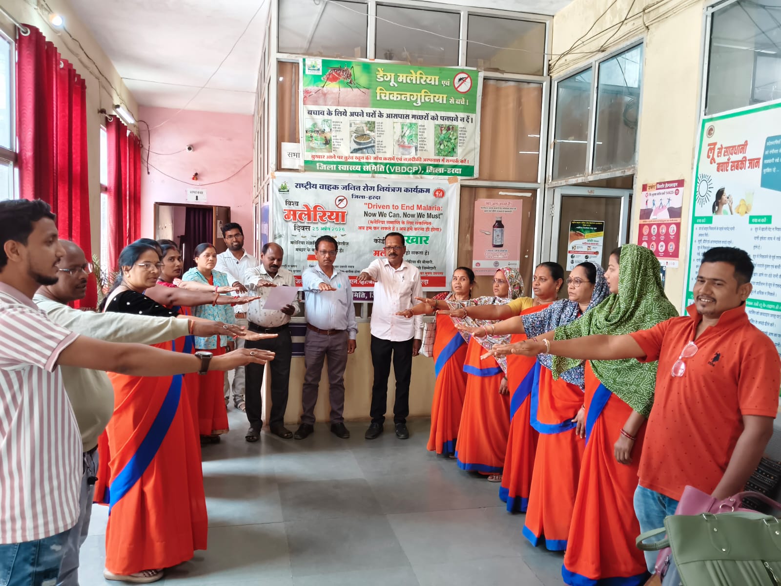 शनिवार को विश्व मलेरिया दिवस के उपलक्ष्य में कार्यालय मुख्य चिकित्सा एवं स्वास्थ्य अधिकारी हरदा में आशा कार्यकर्ताओं की कार्यशाला का आयोजन कर लार्वा सर्वे कार्य एवं फीवर सर्वे कार्य करने हेतु निर्देशित किया गया। विश्व मलेरिया दिवस पर जिला मुख्यालय एवं स्वास्थ्य संस्थाओ में शपथ आयोजन, नारे लेखन कार्य, एवं प्रचार-प्रसार कार्य एवं आमजन में मच्छरजनित बीमारियों के बचाव संबंधी जनजागरूकता हेतु माईकिंग कार्य एवं पंपलेट्स वितरण कार्य कराया जा रहा है।